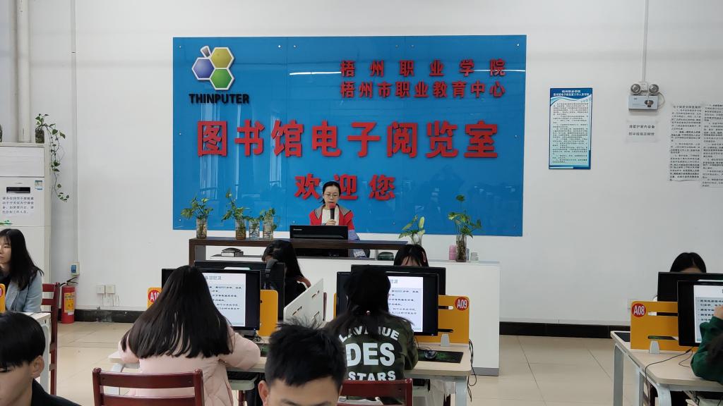 “電子閱覽室是建立在計算機和網絡技術基礎上的現代化多功能閱覽室。在這裡可以很方便實現新書查詢、圖書的預約、續借、預借和館際互借查詢等業務。”12月23日,在圖書館電子閱覽室,管理員小麥耐心地向同學們介紹電子閱覽室的功能和使用方法。這是圖書館開展入館教育的一個場面。