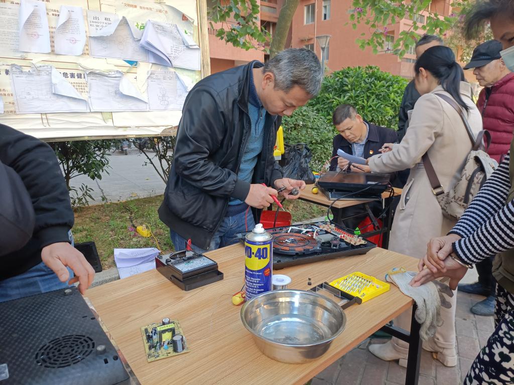 本次活動,主要開展家電維修、貼手機膜、小區衛生清掃等便民利民志願服務活動,用心解決群衆的困難事、煩心事。活動中,有居民帶着家中小電器前來維修,維修人員仔細檢查并詢問家電損壞的情況,細心地修理每一部小電器,竭盡所能為前來的社區居民解決電器故障。同時還有黨員向社區居民介紹如何安全使用家用電器、節約能源,避免在使用過程中因不恰當地使用方法造成傷害及損失。
