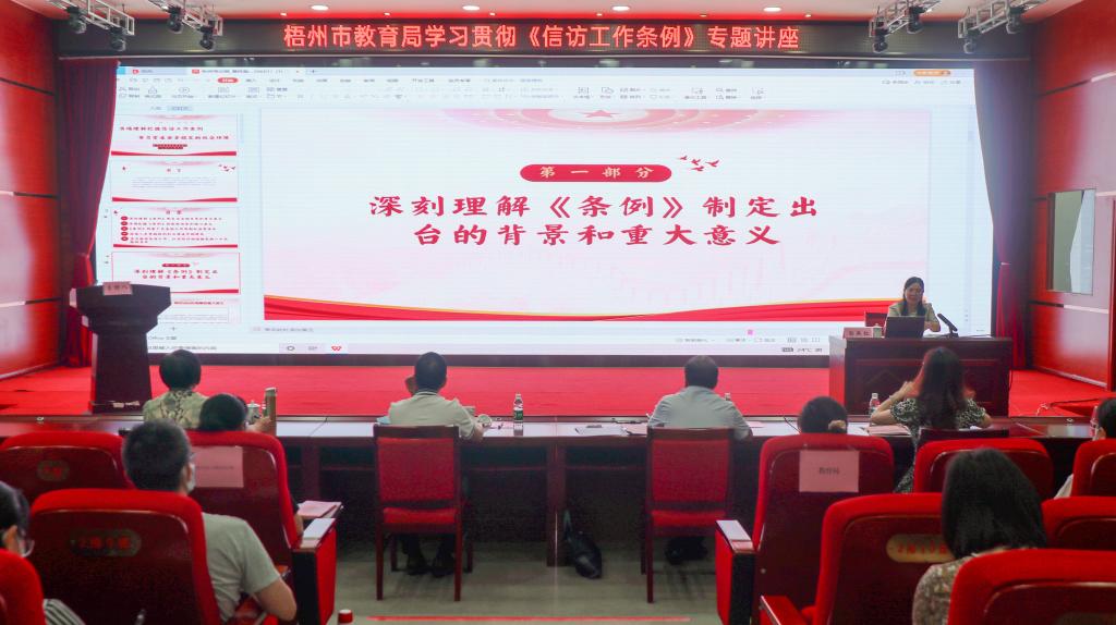 郭燕紅同志以“準确理解把握信訪工作條例,努力營造安全穩定的社會環境”為主題,從《條例》制定出台的背景和重大意義、《條例》的框架内容、适用範圍和工作定位、《條例》構建的工作體制和監督體系、信訪人享有的權利和必須遵守的規定等方面進行了詳細的講解。她強調,要準确理解和把握《信訪工作條例》,就要堅持黨的領導這一最高原則,堅持人民至上這一根本要求,聚焦責任落實這一關鍵環節,運用法治思維和法治方式這一基本方法,抓住源頭治理這一治本之策,把《條例》明确的各項任務要求不折不扣落到實處,服務黨和國家工作大局,維護群衆合法權益,化解信訪突出問題,促進社會大局穩定。