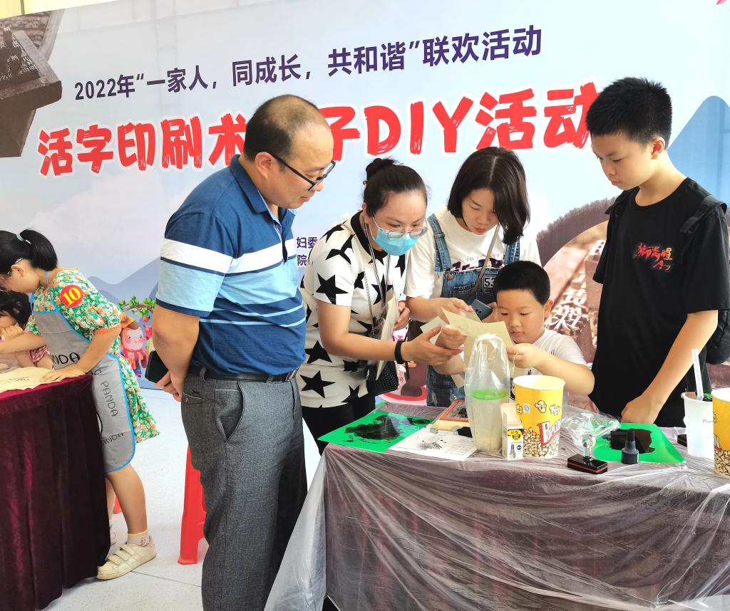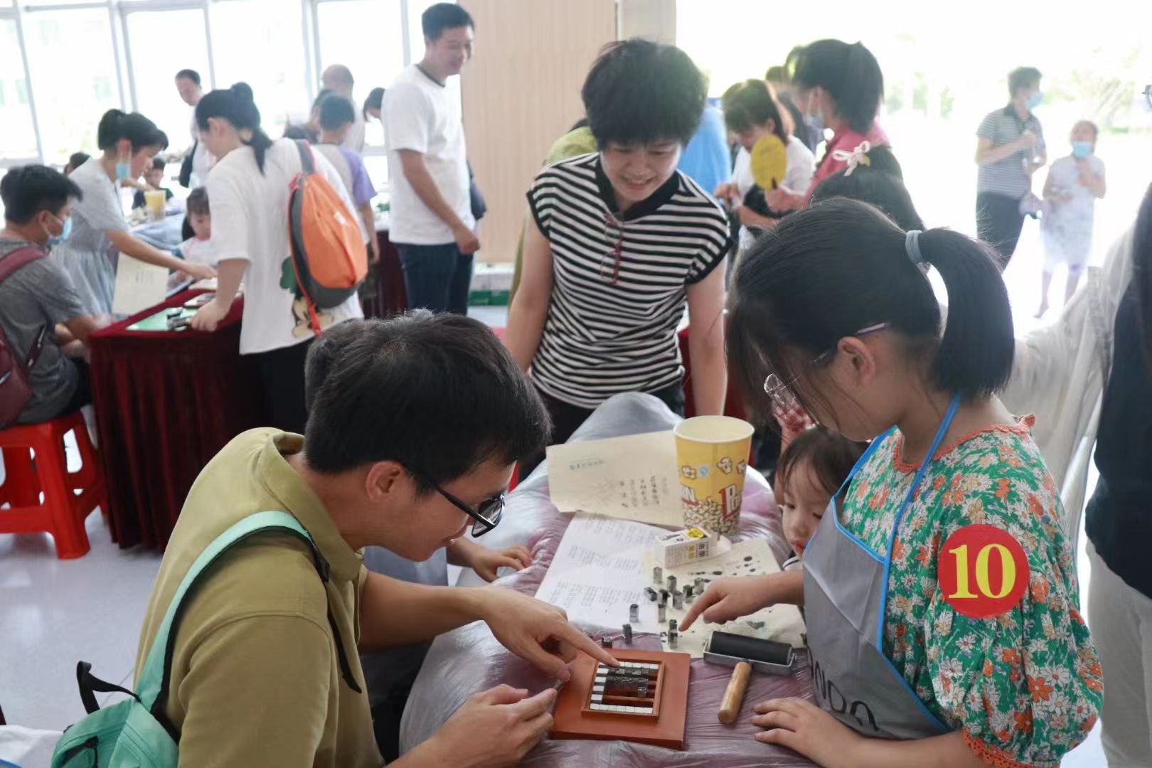 在“親子活字印刷術DIY”活動區域,小朋友們先是敲定文案,然後選字拼字,在使用活字印章的過程中,感受我國傳統文化的精髓。