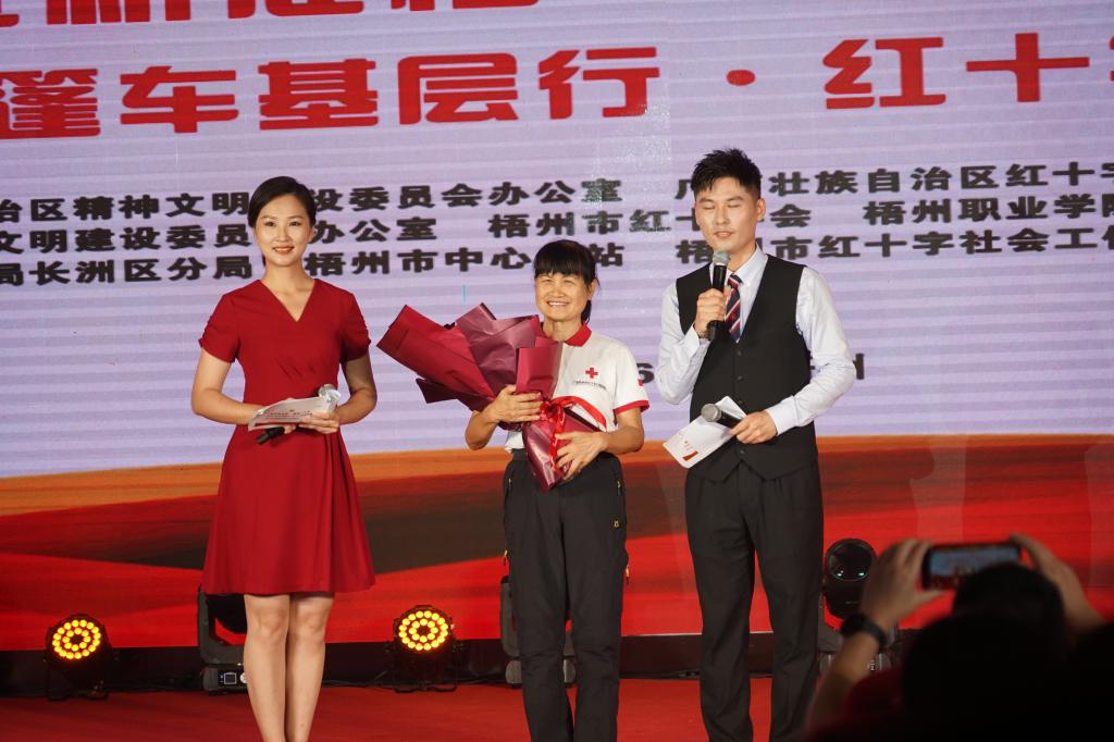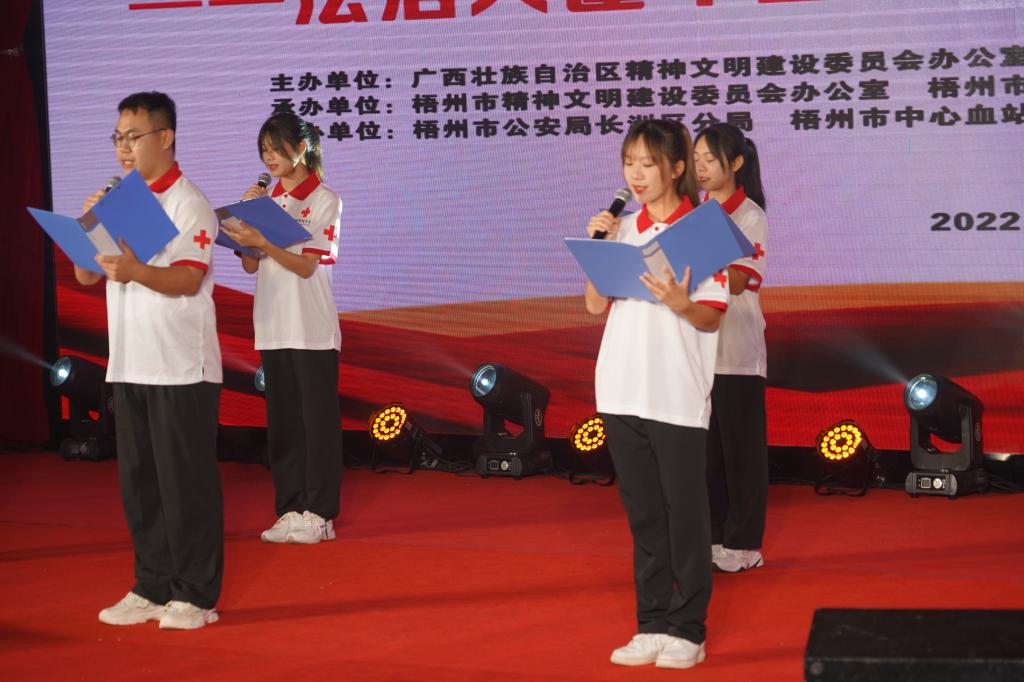 梧州市紅十字會黨組成員、專職副監事長郭麗、金年会黨委副書記、紀委書記賴浪濤、廣西廣播電視合綜藝旅遊頻道融媒體項目部總制片人陳繼先、蒼梧縣紅十字會專職副會長郭錦瑜、岑溪市紅十字會專職副會長藍衛出席了活動,梧州市紅十字志願者,學校師生代表及志願者代表參加了此次活動。