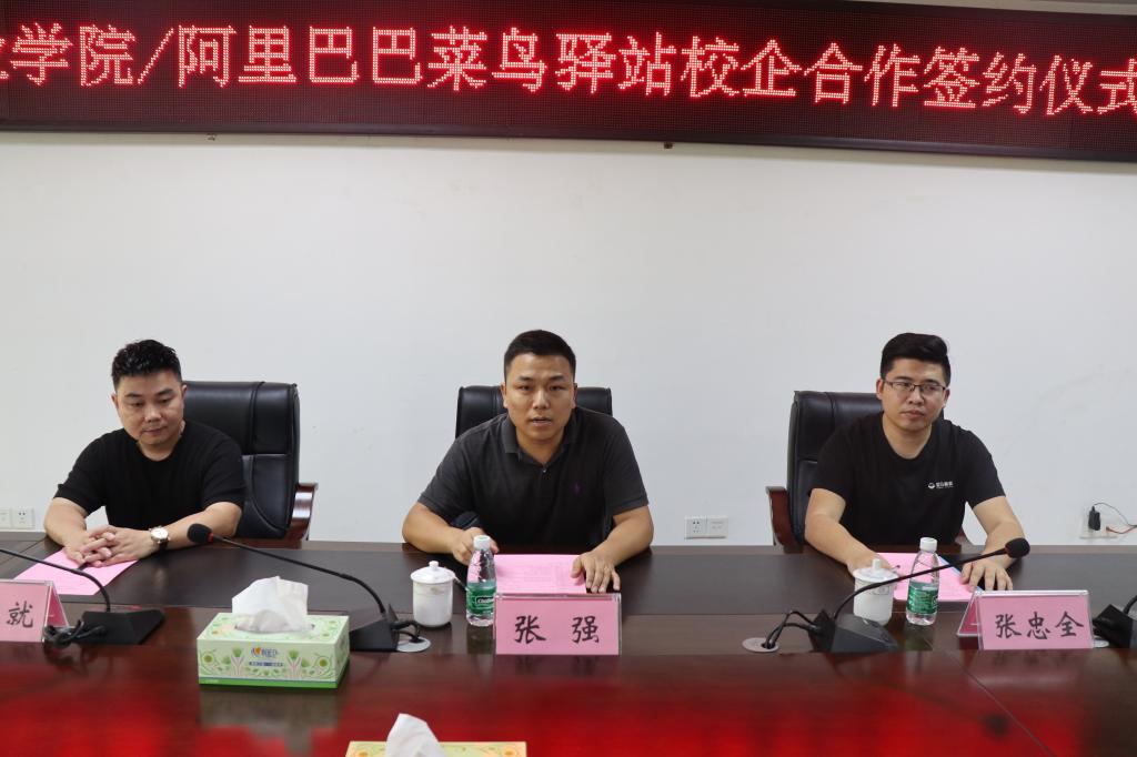 學院院長陳森英、浙江驿棧網絡科技有限公司菜鳥校園驿站大區經理張強出席儀式并代表雙方簽約。
